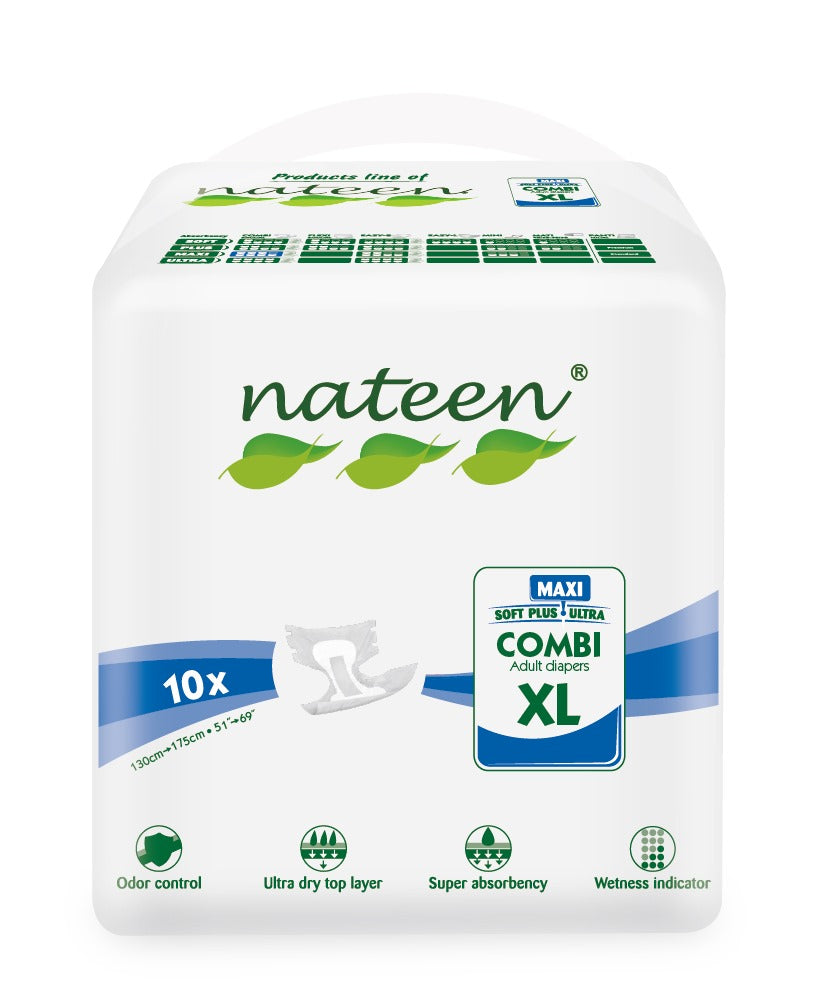 - 1.Maximum Absorbency: Nateen adult diapers are with Ultra-absorbent inner core layer consisting of chlorine-free cellulose and 100% long fibers for High protection.