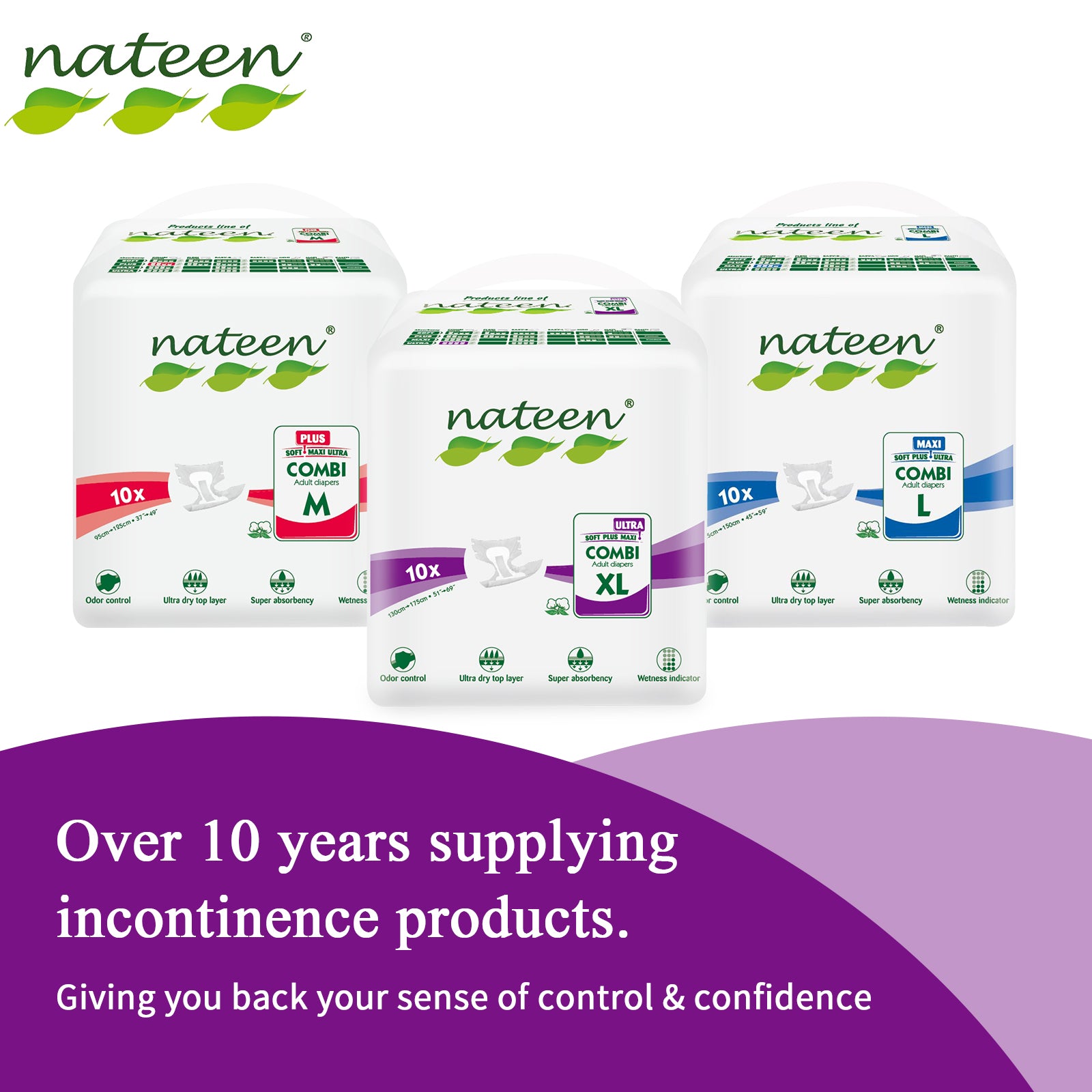 Nateen X-Ultra Incontinence Adult Diaper,XXL,Waist Size 160-210cm,10 Count Adult Diapers,Disposable Underwear for Men&Women,Briefs with Maximum Absorbency, Leak Protection-6000ml Absorbency.