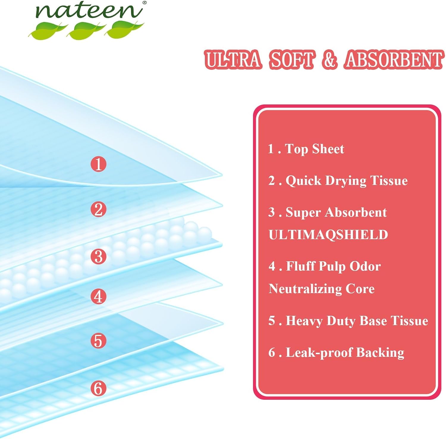 - Super absorbent sodium polyacrylate padding to protect mattresses from urine damage.
