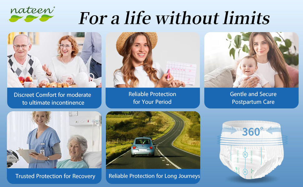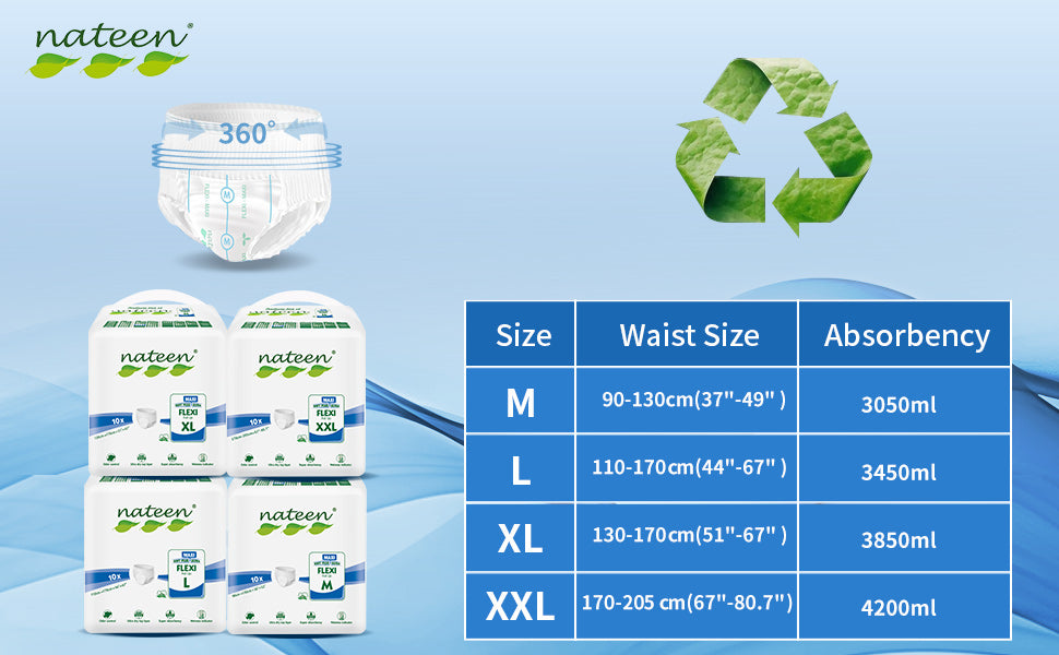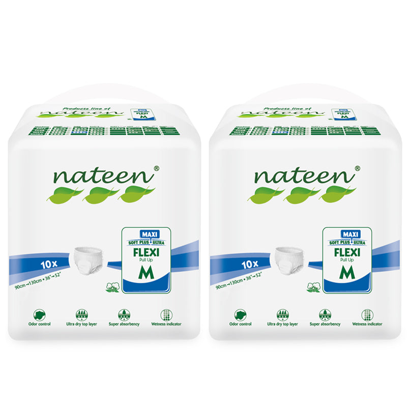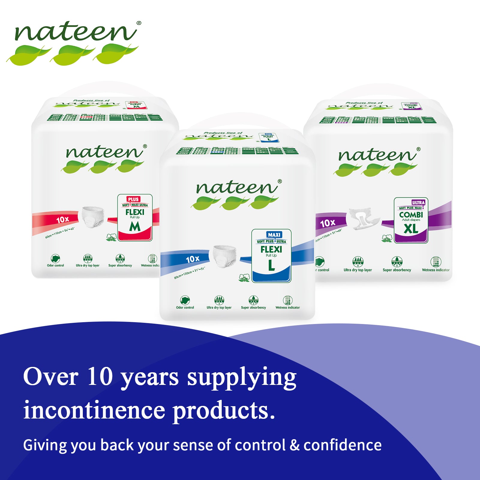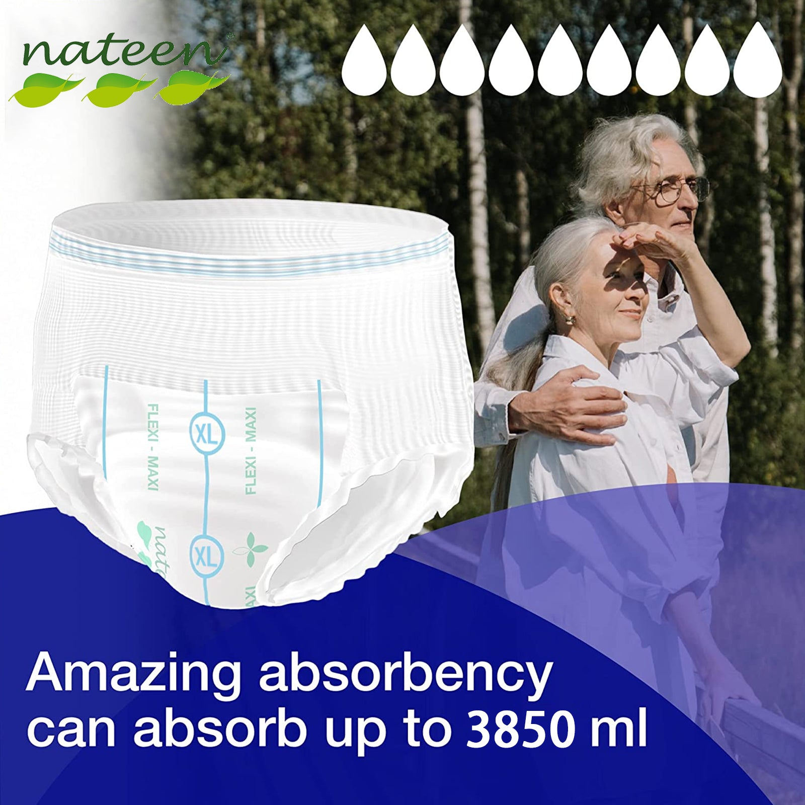 Nateen Flexi Maxi Adult Diapers Pants,Incontinence Night Time Pull Up,Medium,Waist Size 90-130cm,10 Count Adult Pull Ups,Superior Comfort,Excellent Combination of Protection. (10 Count)