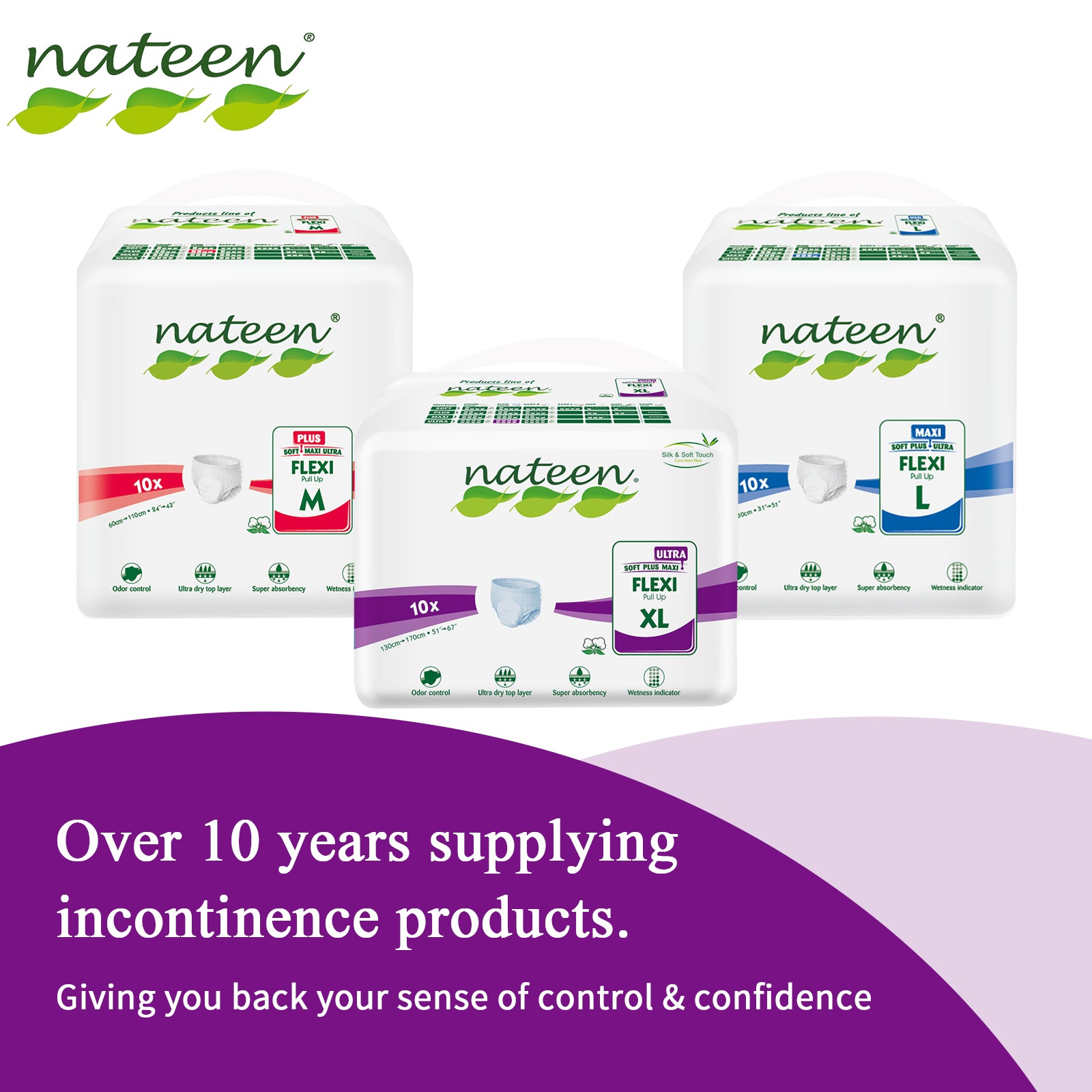Nateen Flexi Ultra Adult Diapers Pants, ultima absorbency Incontinece Pull Ups, Medium,Waist Size 90-130cm,10 Count Adult Pants diaper,Superior Comfort,Excellent Combination of Protection.