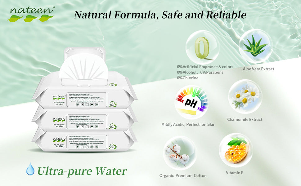 - All-natural wipes for sensitive skin; made with aloe vera and hypoallergenic materials