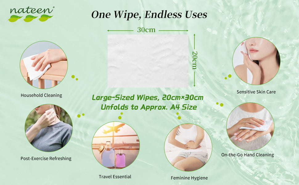 Nateen Multi Purpose Wipes,Pure Water Universal Wipes,40s x 3 Packs (120 Wipes),Big Size Wet Wipes for All Purpose Cleaning,Aleo vera & Jasmine Lotion for Sensitive Skin.
