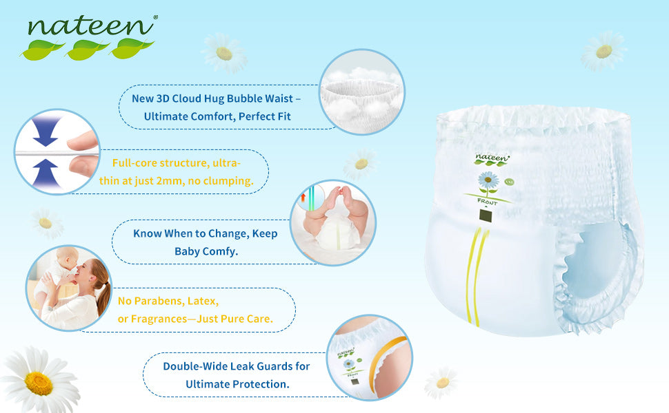 Nateen Premium Baby Pants Diapers,Size 5 (12-17kg),X-Large Baby Pull Ups,Super Absorbent,Ultra Thin Baby Diapers Pants.