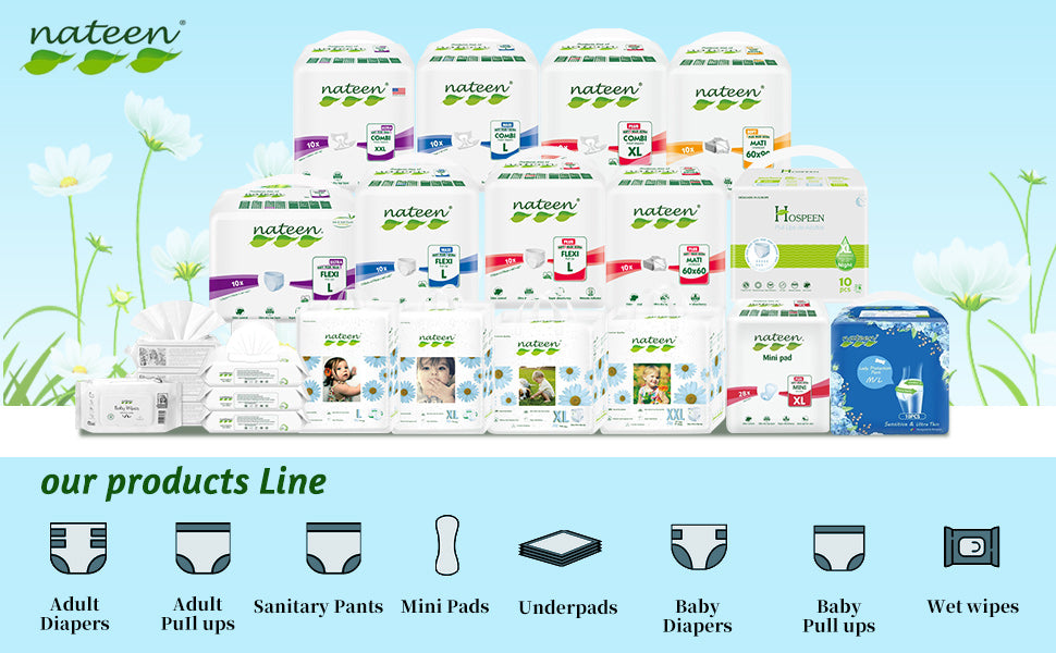 • Pull-up diapers maximize absorbency levels and neutralize odors; a waterproof back sheet maximizes skin integrity by enabling comfortable airflow
