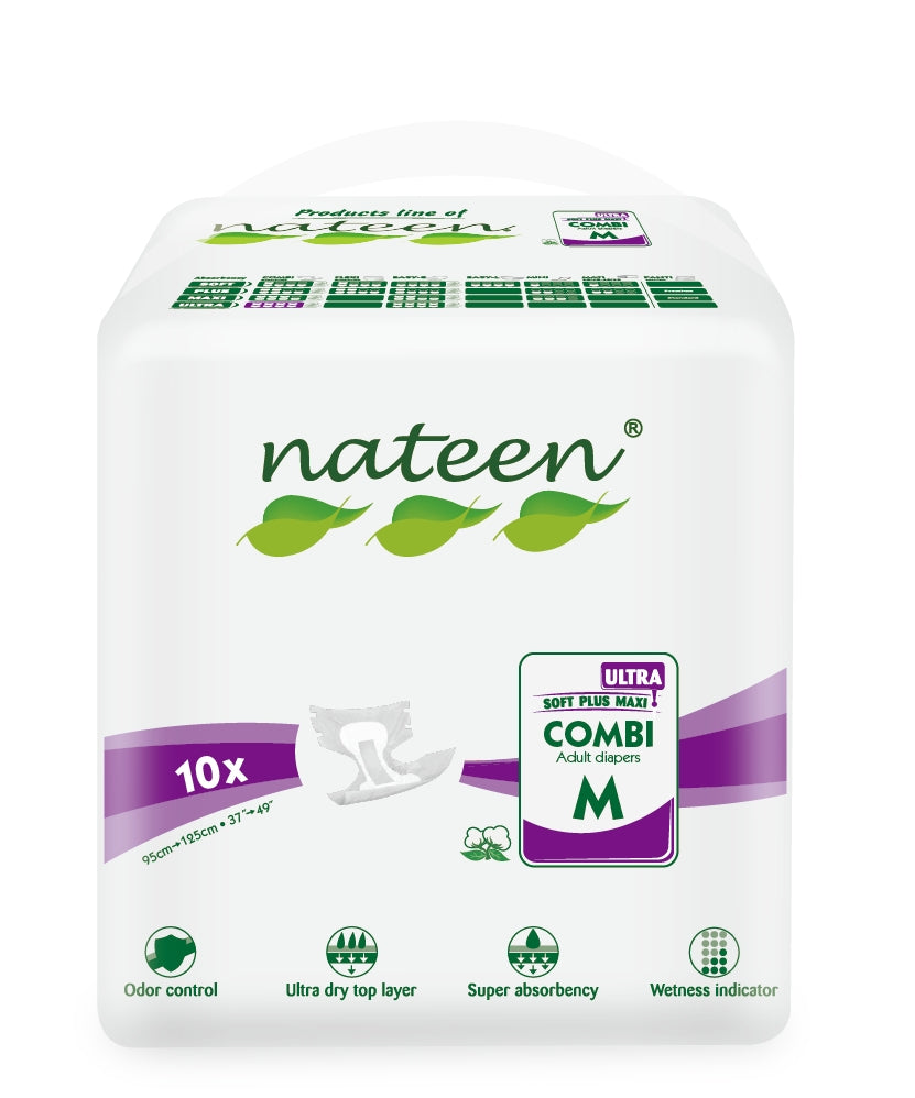Nateen Super Ultra Incontinence Adult Diaper,Medium,Waist Size 95-125cm,10 Count Adult Diapers,Disposable Underwear for Men&Women,Briefs with Maximum Absorbency, Leak Protection-3700ml Absorbency.